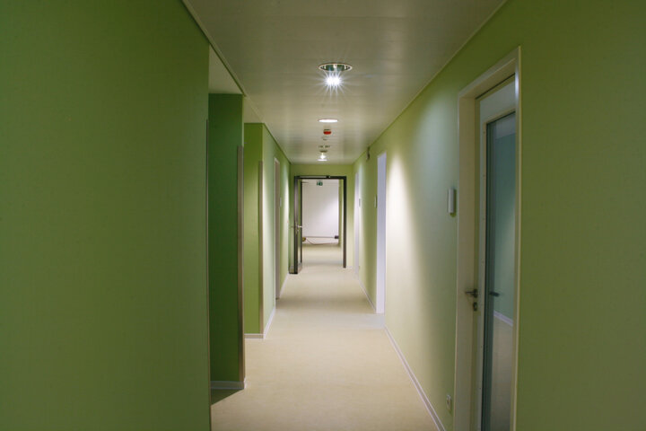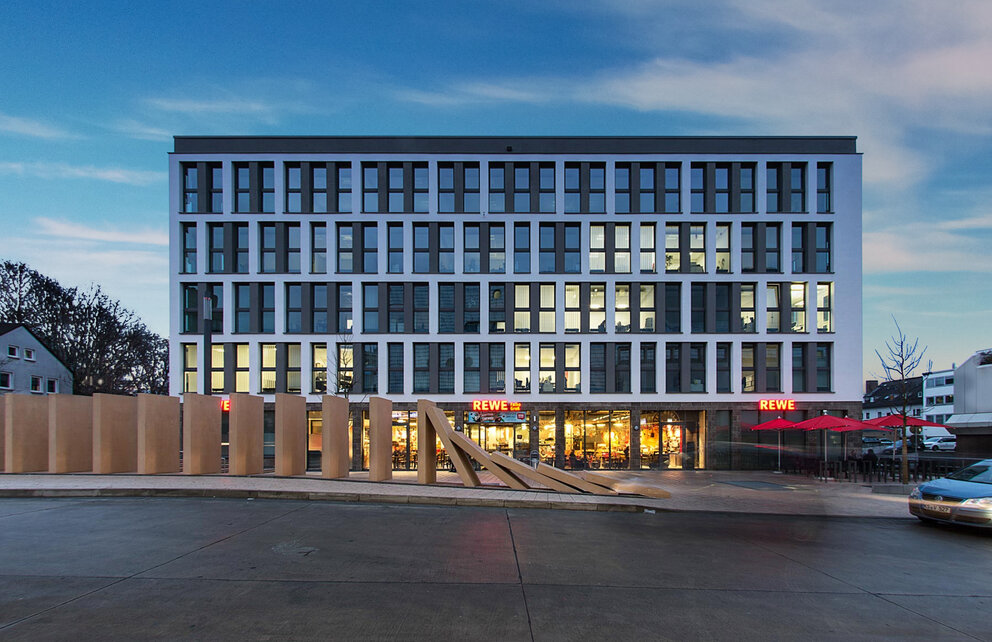 Ein feingliedriger Rost mit subtilem Tiefenrelief umhüllt mit ruhiger Textur das Büro- und Geschäftshaus und bezieht sich in Material und Farbfassung auf das benachbarte Ensemble der Lutherkirche. Die modulare Ordnung von Fassade und Grundriss ermöglicht vom Einzelbüro über Kombi- und Großraumbüro alle zukunftsfähigen Raumorganisationen.
