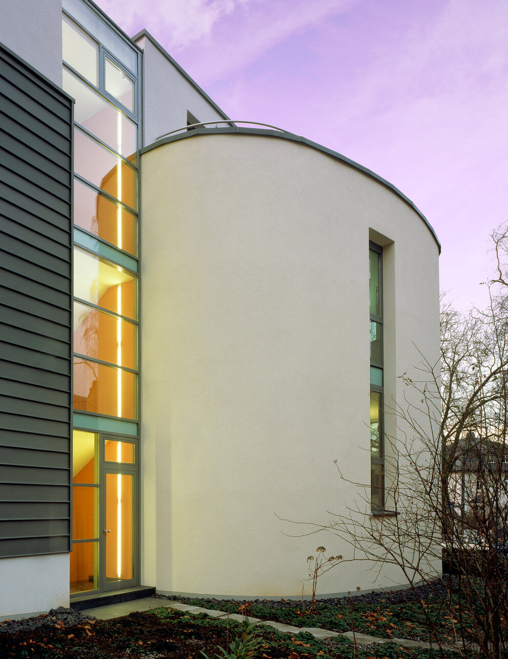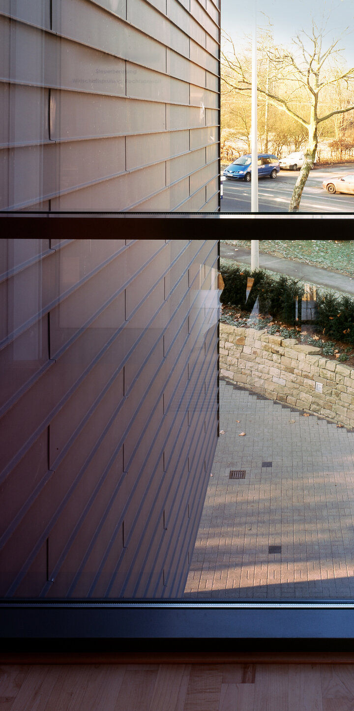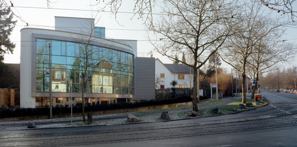 Das Grundstück am Rande des in den 20er Jahren mit Gartenstadtcharakter angelegten "Flüsse- viertels" galt wegen seines Zuschnittes und der Lage an 2 starkbefahrenen Strassen als schwer bebaubar.