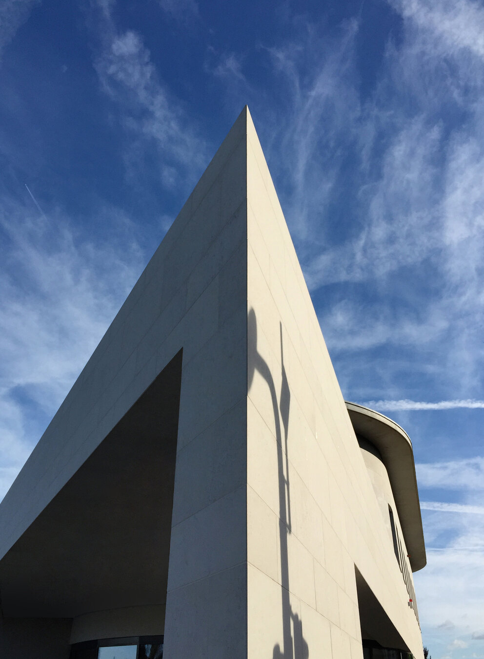 Die Architektur generiert ihre Aussage aus der Bildung eines solitären Körpers mit ausgewogenen Proportionen, dessen Figur sich aus der Grundfläche des inselartigen Grundstücks ableitet – übersetzt in eine Komposition aus Dreieck und Kreis, unterstützt durch ein Farbkonzept mit hellen Farbtönen.